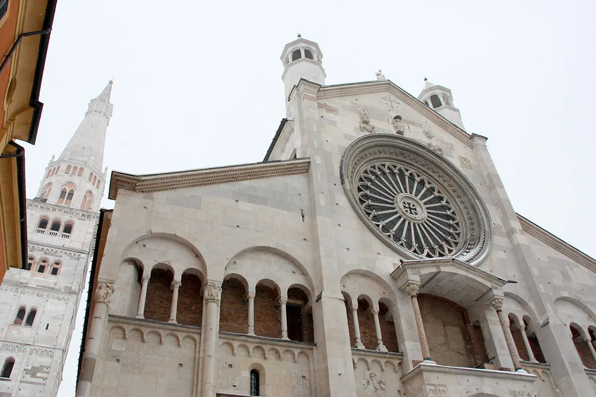 Il Duomo fu fondato il 9 giugno del 1099 per iniziativa delle varie classi sociali cittadine, come affermazione dei valori civici, culturali e religiosi della nascente Comunità. Dedicato a S. Maria Assunta, custodisce le spoglie di S. Geminiano, Vescovo e patrono di Modena morto nel 397. Il sepolcro del Santo vi fu trasferito nel 1106 da una precedente cattedrale. La consacrazione avvenne nel 1184.